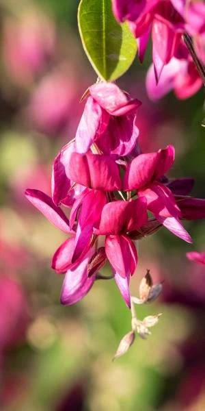 Commonly known as Thunberg bush clover, this Lespedeza produces long, arching stems which bear green clover-like foliage and racemes of deep rose pea-like flowers throughout the autumn.