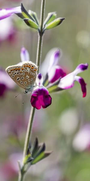 This stunning bi-coloured, rich purple and white flowered, shrubby perennial, is a subtler and perhaps some may say, easier to place, relative of the highly popular Salvia ‘Hot Lips’. Like its famous cousin, Salvia ‘Amethyst Lips’ flowers throughout June and October and grows, to about 100 cm x 75cm and is equally at home in either a mixed border or a large pot, in moist but well drained soil, in full sun.Â